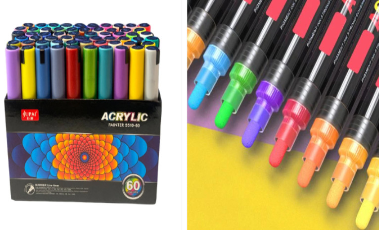 Set de 60 de Markere Multicolore, acrilic pentru piatra, pânza, ceramica, sticla, lemn, pentru albume de albume, articole de arta