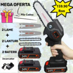 Super Oferta – Mini Drujba Fierastrau, cu 2Lame, 2 Lanturi, 2 Acumulatori si incarcator + 1 Pila de Ascutit CADOU!