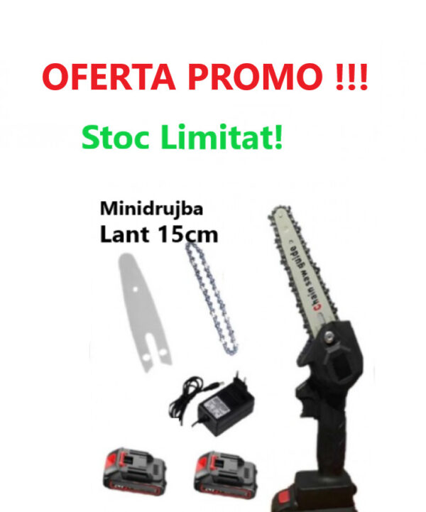 Super Oferta !!! Mini Drujba Fierastrau, Lama de 15.2 cm, Cu 2Lame, 2Lanturi si 2Acumulatori