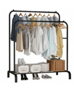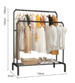 Suportul perfect pentru haine va poate satisface nevoile zilnice. Doua sine pentru haine pot gazdui dublul cantitatii de haine, iar partea de jos are un suport de pantofi cu doua straturi pentru pantofi si cutii de pantofi.