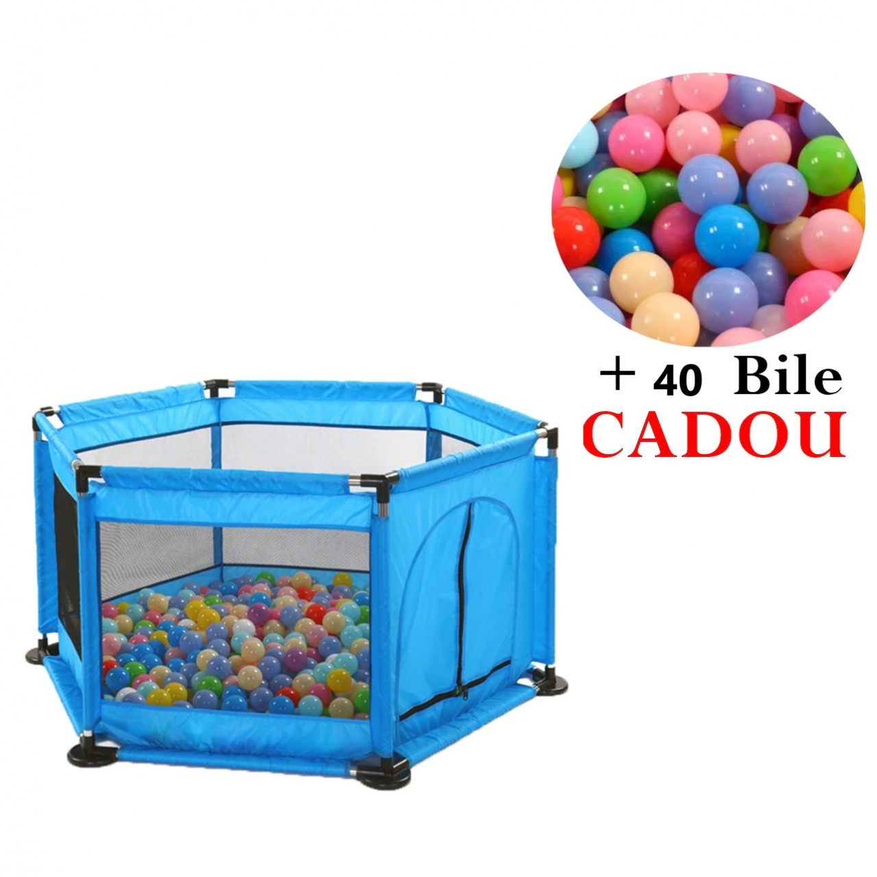 Tarc de Joaca + Cos de Baschet Pentru Copii cu 40 bile Cadou, Albastru, 01000bby