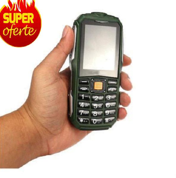 Telefonul tactic este rezistent la, praf si socuri fiind pretabil pentru vanatoare, sporturi extreme, santier sau alte domenii outdoor. Pentru pasionatii de miscare si/sau lucrul in aer liber cat si pentru cei care au pretentii de la un terminal inteligent pentru o folosire placuta si indelungata acest telefon militar, beneficiaza de functie dual Sim, FM radio, lanterna, bluetooth, fiind extrem de rezistent conditiilor dificile de lucru.