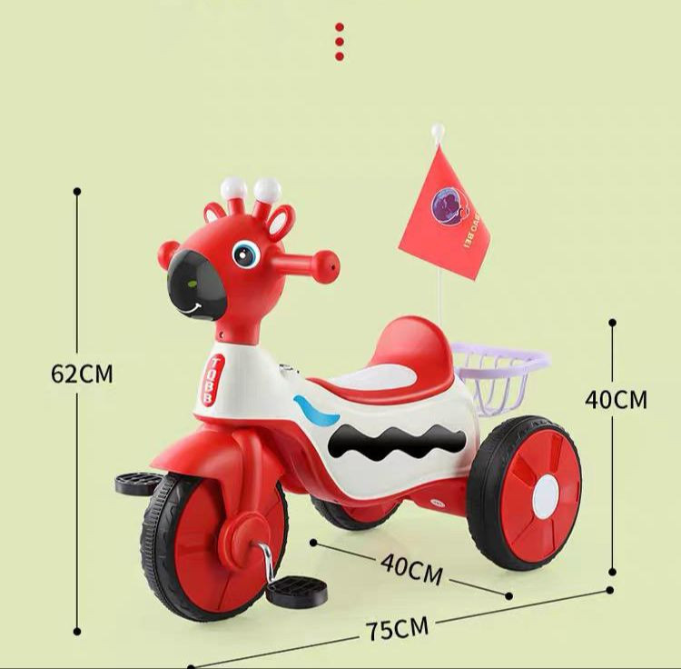 Tricicleta pentru copii cu sunete, lumini si cosulet depozitare – Girafa TRICICLETA multifunctionala sub forma unei girafe amuzante Aceasta tricicleta pentru copii are un design original inspirat din animalele apreciate de cei mici. Datorita structurii sale, este ideal pentru copii sa invete sa pedaleze. 3 ROTI LATE: Cele trei roti garanteaza stabilitate maxima, pentru a face conducerea tricicletei cu pedale mai sigura si mai distractiva. LUMINI SI SUNETE: Un detaliu misto pentru a face tricicleta pentru copii si mai distractiva! Sunt necesare 3 baterii AAA pentru a activa sunete si lumini (nu sunt incluse). VARSTA RECOMANDATA: Utilizarea acestei triciclete este recomandata copiilor intre 18-36 luni si peste. Aceasta bicicleta cu pedale poate suporta o greutate de pana la 20 kg. Dimensiuni tricicleta: Mentiune: Vanzatorul face eforturi permanente pentru a pastra acuratetea informatiilor din acesta pagina. Rareori acestea pot contine inadvertente: Imaginile folosite si textele de pe SITE au caracter informativ și pot varia sau diferi ocazional față de caracteristicile produselor prezentate. Toate promotiile prezente in site sunt valabile in limita stocului.
