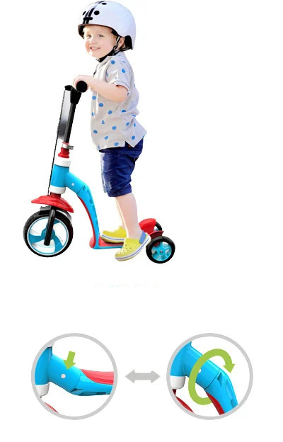 Trotineta ride-on convertibila 2in1: tricicleta si trotineta, cu frane, Albastru-Rosu, 01000LN